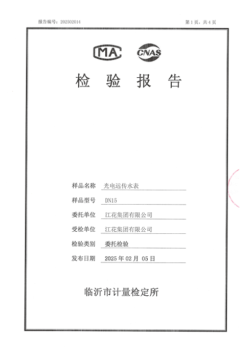 光电远传水表检验报告DN15