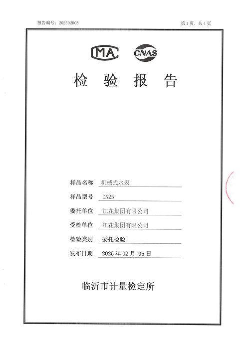 机械式水表检验报告DN25市